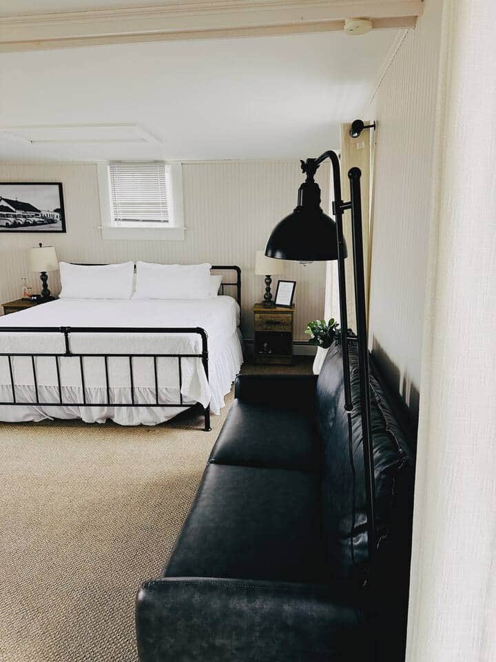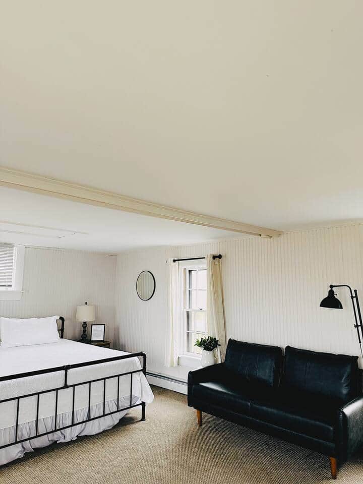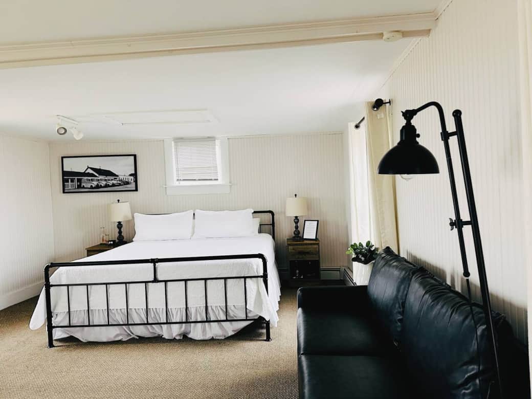 The Burnham Room is an 1800’s King Room with a private bath located on the second floor of The Inn. This room is our most spacious, & has recently been updated in a slightly modernized tone! The room was looking a little old & needed a face lift. Now, it is furnished with some modern farmhouse furniture but still has it’s old house charm! We have added small antique touches to bring some of our historic dairy farm to you. Cozy up to a nice book while gazing out the windows at The Machias River!
